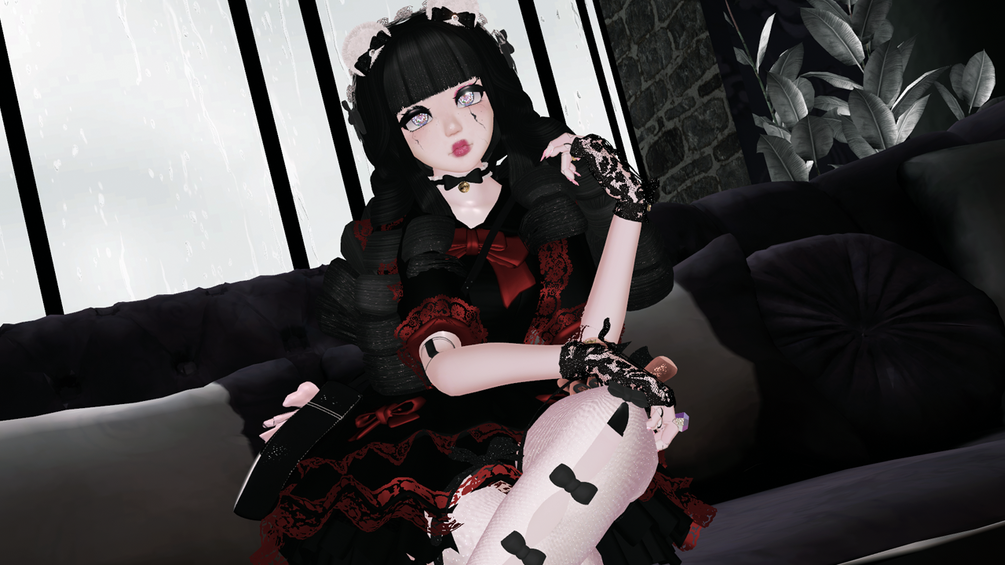 Body (sculpt by me) / Nails / Head (sculpt by me) / Pigtails / Doll curls / Short hair / Mel hair & textures (edited) / Doll dress & apron (no longer for sale) / Schoolgirl outfit / Candy maid outfit / Bodysuit / Stockings / Panties / Pasties / Mary Jane shoes / Gyaru shoes (no longer for sale) / Purse (no longer for sale) / Garters / Armwarmers / Lace gloves / Paws (edited) / Headband / Eyepatch / Wand (no longer for sale) / Bear ears (no longer for sale) / Choker (no longer for sale) / Earrings (no longer for sale) / Candy hearts (edited) / Donut scrunchies / Ringpop / Teddy follower (COMMISSIONED version, do not reuse textures) / Teddy bear (made from teddy follower) (COMMISSIONED version, do not reuse textures) / Candy guts / Parasol (COMMISSIONED) / "Crybaby" soother (edited) / Patchwork face / Key / Noelia’s Friendship Ring (COMMISSIONED) & particles / Comfy outfit (bear texture edit by me) / Candy shoes / Lollipop